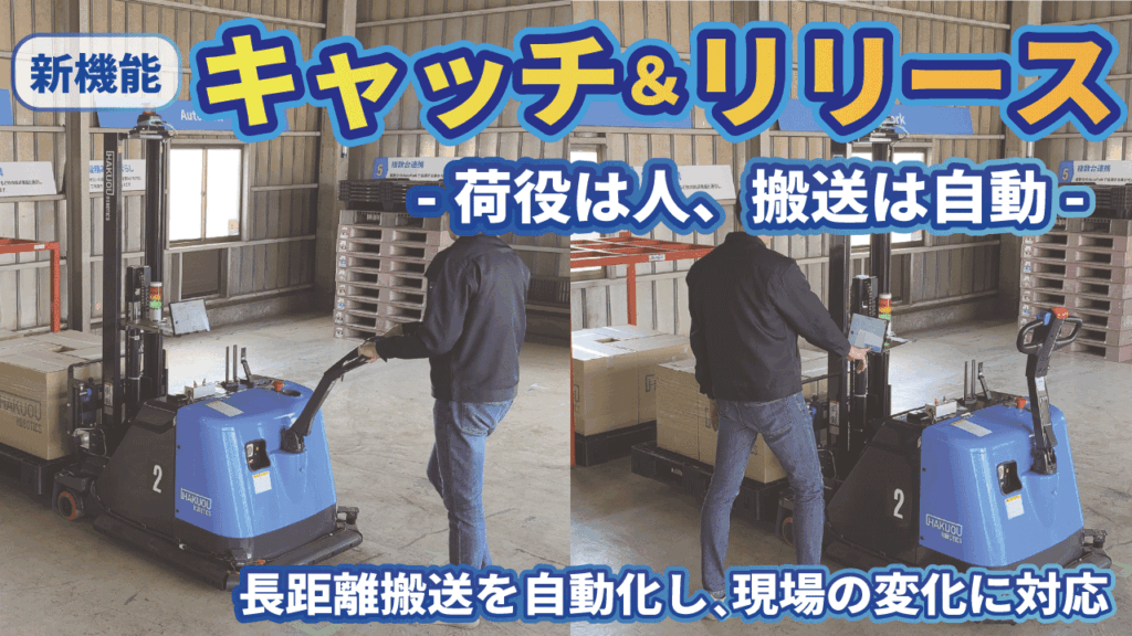 「プレイバック機能」で納入日から直ぐ利用可能。そして、高精度制御機能を備え、走行・停止精度は±10mm。さらに、搭載カメラで複数パレットも自動認識・取得可能です。