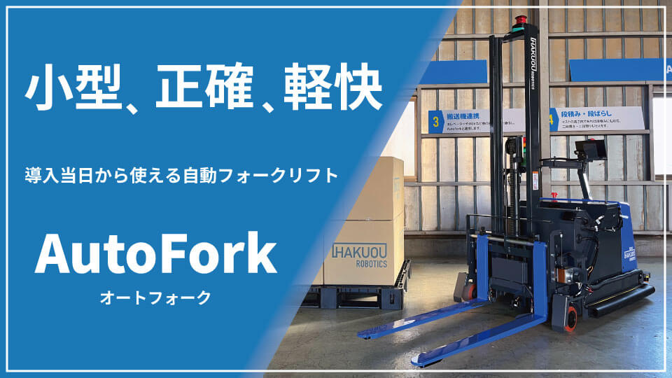 コンパクトで小型な自動フォークリフトとして、ハクオウロボティクスの「AutoFork」が挙げられます。