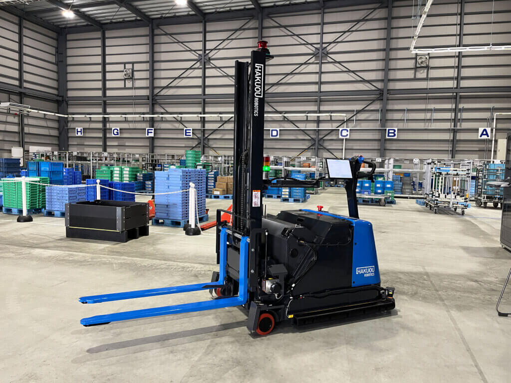 人やAMRが共存する現場で、コンパクトな自動フォークが省人化を実現
