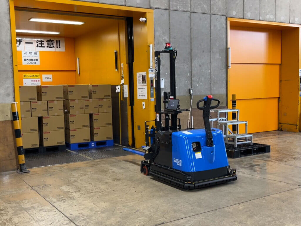 既存の設備を活かしたまま、低コストで導入可能な自動走行フォークリフト。コンパクト設計で狭い通路や人と共存する環境に最適です。