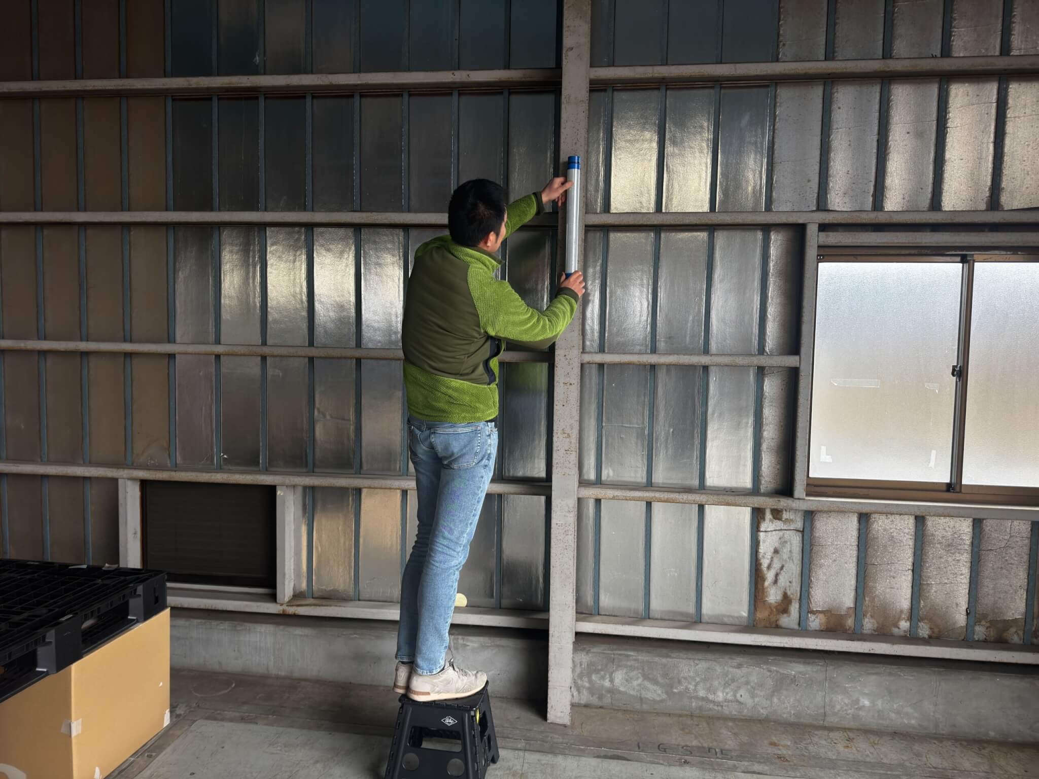 直径約6cm・高さ約50cmの反射ポールをセンサー高さ(約2.1m)に合わせて設置